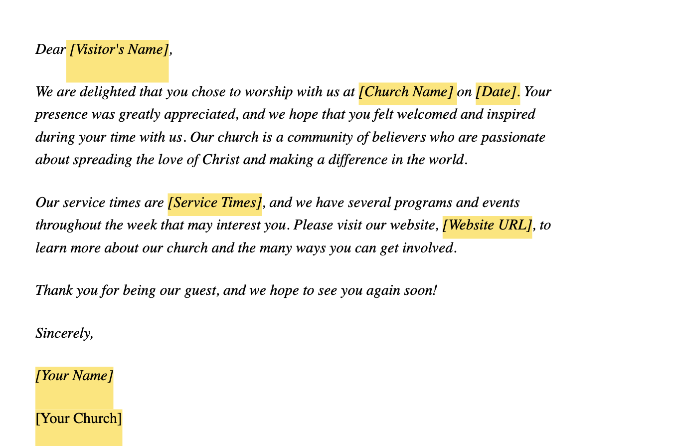 In this article, we'll provide examples of what an effective church visitor letters looks like - one that make visitors feel welcome and encourages them to come back.
